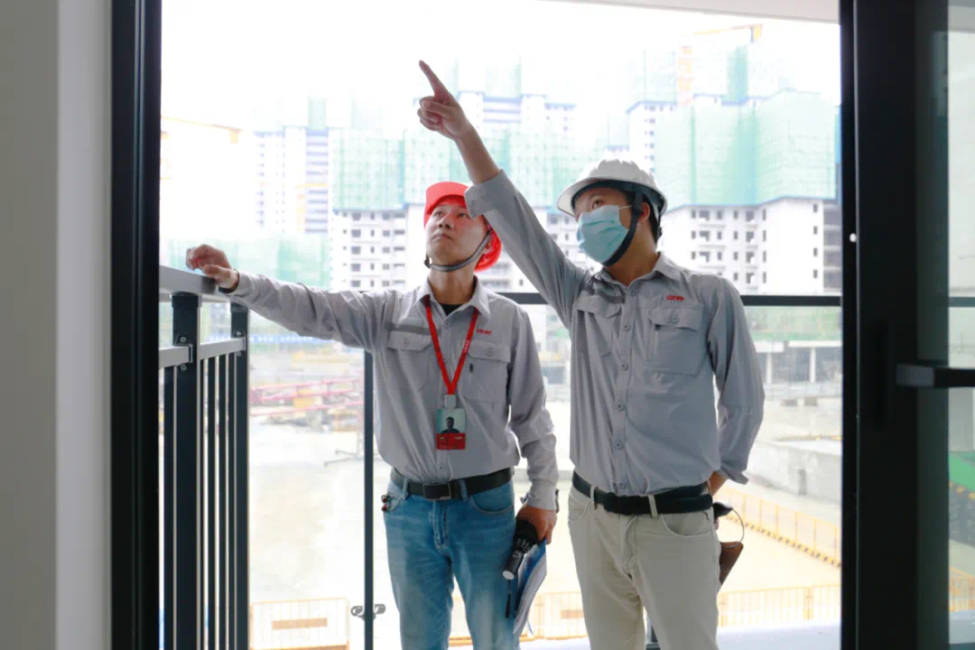 在观摩华侨城万科世纪水岸工地现场时,参观者可以系统了解到华侨城万科先进的“5+2+X”的工业化核心建造体系。5是铝模、爬架、全砼外墙、高精砌块、穿插施工,通过对生产工艺的精益创新和工业化升级,大幅提升了工程质量;2是装配式装修和适度预制,装配式装修本项目采用有干法内保温、管线分离(水管)、装配式栏杆,适度预制本项目采用的有预制混凝土生化池、预制混凝土承台模。