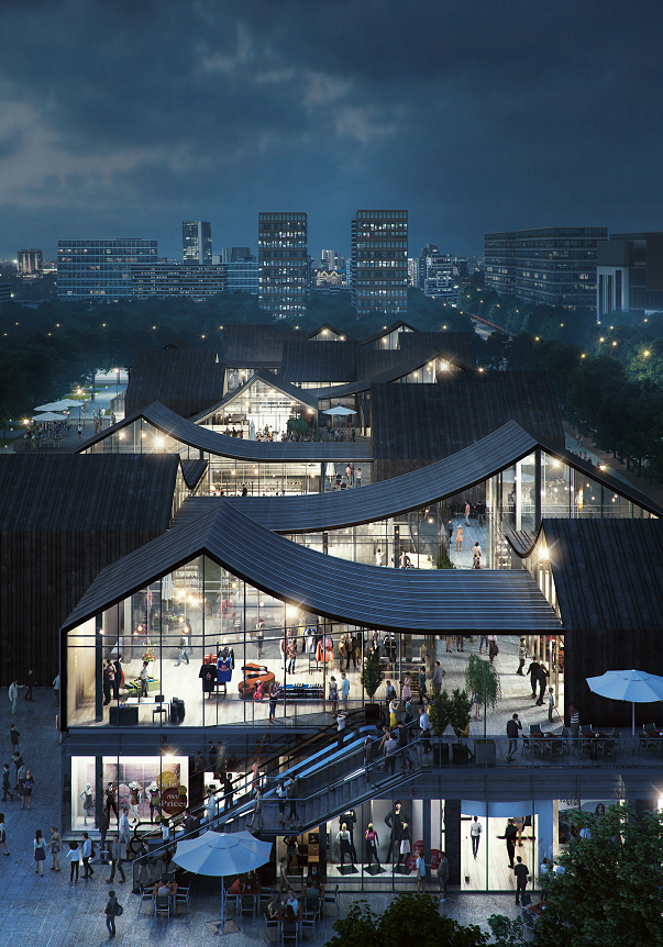 玩美公园北区主题为“造物集”,是以连廊合院为主体建筑,打造新锐潮玩创新业态聚合体。该区域做到了步步有景,玻璃墙视野开阔通透,形成“聚合带”,整体以文创、美妆、生活美学品牌主力店、特色主题馆为主,配套家饰、手作、文艺简餐、地方特色小吃及演艺、设计业态。