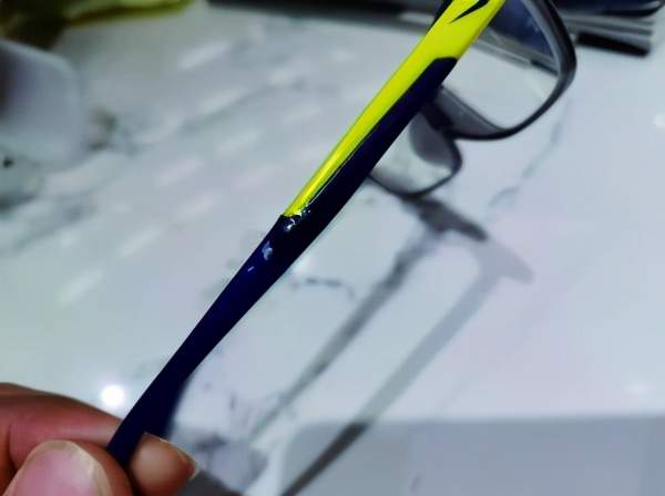 从今年2月开始,吴女士佩戴眼镜时,太阳穴的位置出现不适,并引发红肿皮肤过敏。由于佩戴不适,吴女士更换了一副眼镜,偶尔佩戴这款NIKE眼镜。今年6月,吴女士发现镜架的镜腿部位产生不明液体。