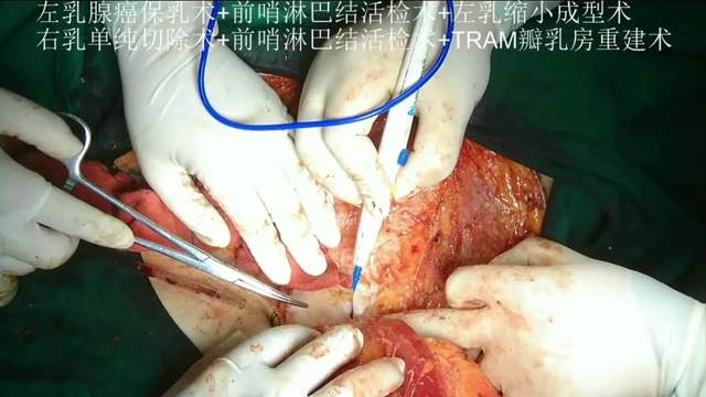 视频直播共展现了由三院乳腺外科团队实施的3场精湛的乳腺外科手术,分别为双腋窝前哨淋巴结活检术+右乳腺癌单纯切除术+TRAM瓣乳房重建术+左乳腺癌保乳术+左乳缩小成型术、左乳癌前哨淋巴结活检术+保乳术+部分背阔肌整形修复术及良性肿瘤微创旋切术。给线上及线下的学员同道,带来了震撼的视觉感受。