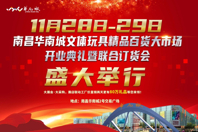 江西文体玩具百货大市场将打造集‘展销+体验+文化+交流’于一体的“一站式”采购贸易服务平台,这场联合订货会不仅是南昌华南城优化营商环境的具体体现,更是南昌华南城打造全国领先文体用品一站式采购服务平台的全新启航,为文体用品产业高质量发展贡献力量,推动整个文化体育产业升级蝶变。
