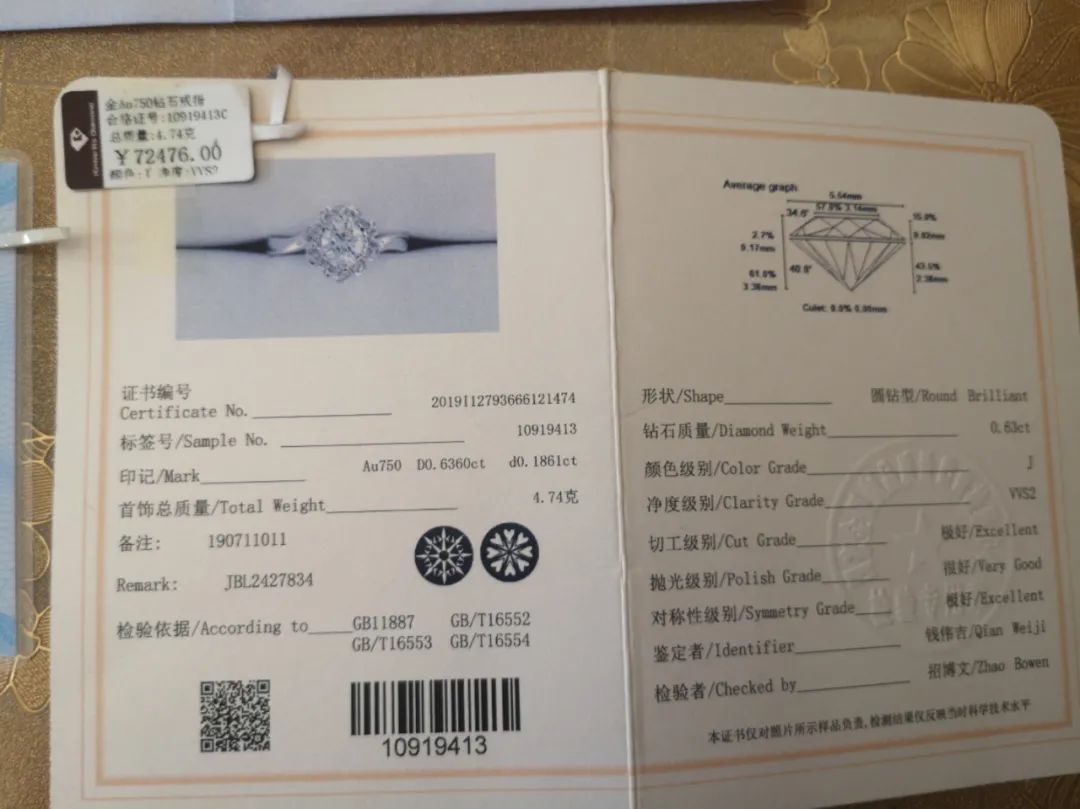 价值7万多的钻戒,主钻丢失