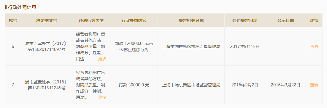 除上述处罚以外,自2016年2月至2019年10月,蜂了时尚科技(上海)有限公司曾因虚假宣传等违规行为被处罚6次,累计被罚款超过20万。