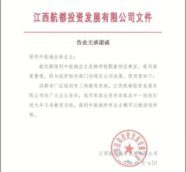 据说当时,楼盘宣传他们三期和四期的中间位置要建一所九年制义务学校。并且当时置业顾问还信誓旦旦地说,给他们南昌市名校,前三甲的名校。
