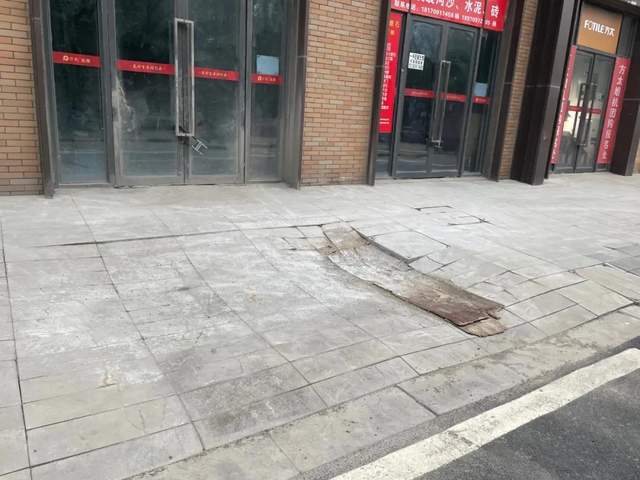 沿街底商还有个大坑,这个估计要等商户入驻之后才能解决了。