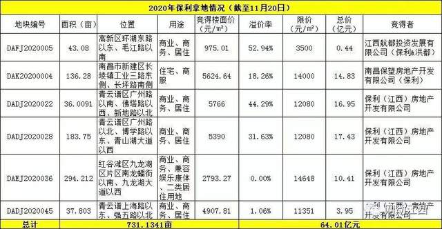 另外根据网动江西的统计,保利今年在南昌可谓是开发大户,6宗地块,横跨高新、青云谱、九龙湖、新建。