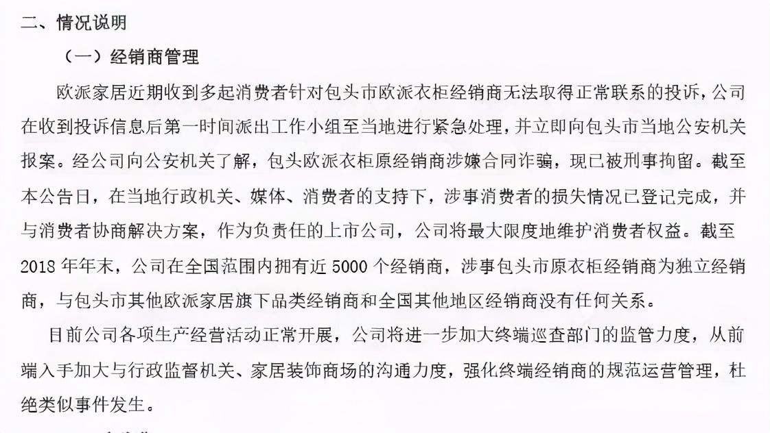 ▲欧派家居回应包头经销商“跑路”事件