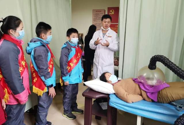 在南昌市洪都中医院,城北学校少年先锋队队员先后聆听了援助江西省新冠肺炎定点救治医院中医药专家兰琴的抗疫事迹和从医初心;近距离观摩了中医专家为患者施行针灸、艾灸、推拿等中医特色治疗;观看了中医器具展示柜中摆放的各类诊疗器具;参观了医院本草植物园。