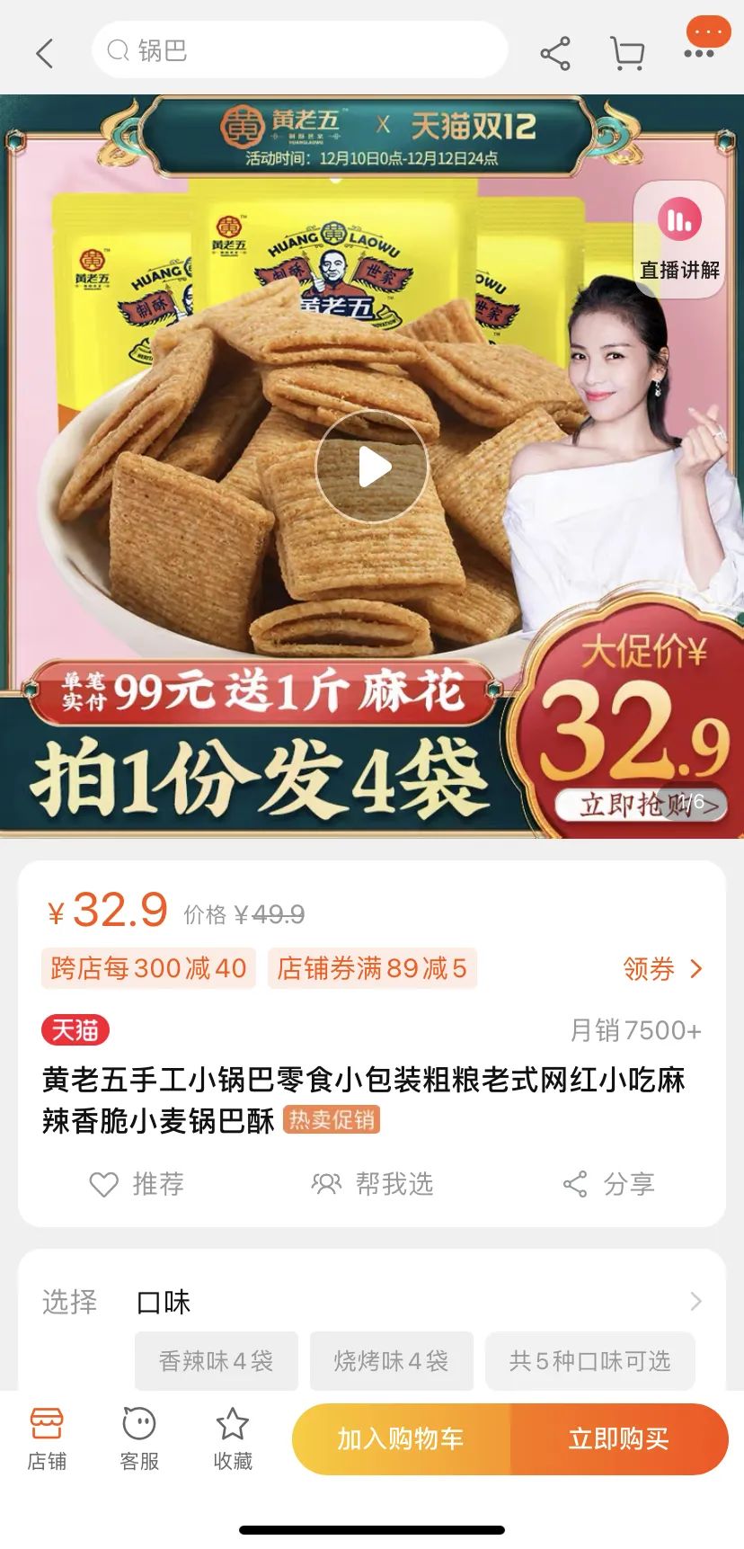 12月7日,《消费者报道》在上述电商平台查询,发现目前搜索“黄老五”已经查询不到任何结果。但本刊发现,目前其天猫旗舰店仍在售该款产品,店铺信息显示,该款产品为该店膨化食品热销第一名,月销7500+。