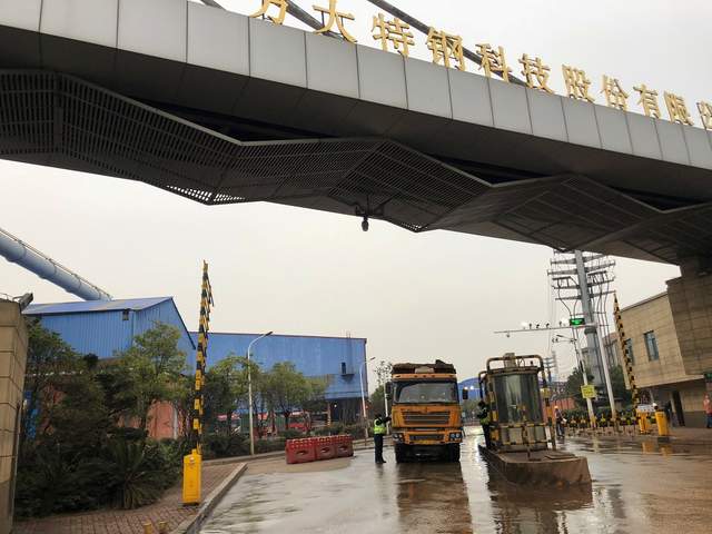 货运车辆驶出方大特钢 彭涛 摄