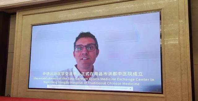 受疫情影响,米尔科•赫伯特教授未能到会,因而以视频为媒介,将大洋彼岸的祝贺送达会场,并在视频中宣布中德运动医学交流中心正式在南昌市洪都中医院成立。