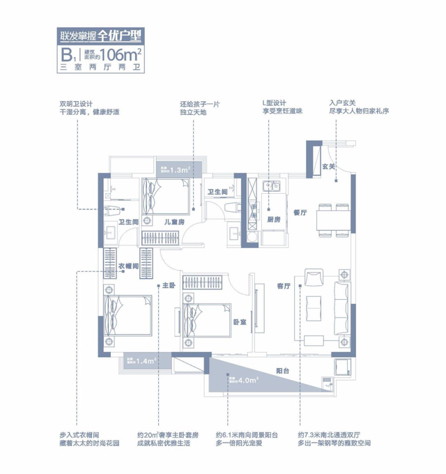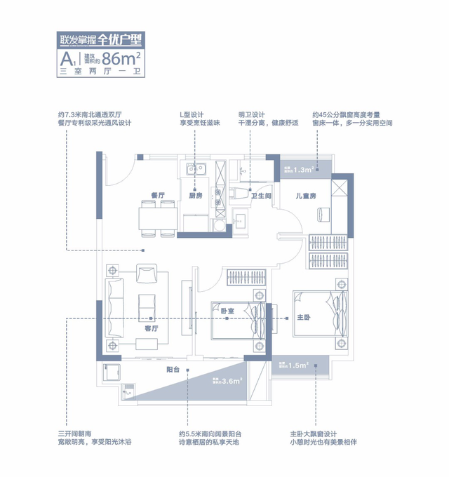 全系产品南北通透,充分增加采光效果的同时给予更大赠送空间,客厅/主卧/阳台尺度远超同面积产品约10-30公分,家居摆放更自由;约45公分飘窗高度考量,更高空间利用率,是城市青年的买房首选。