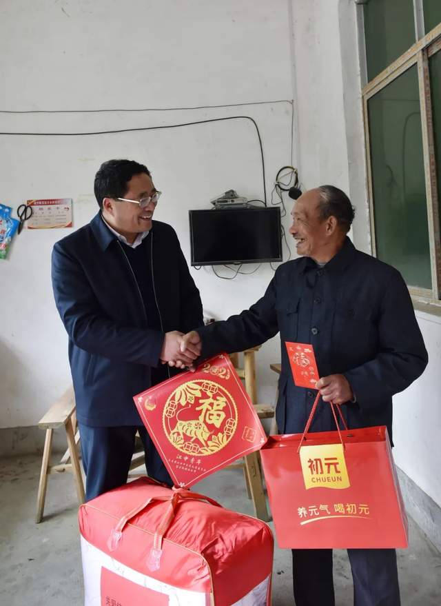 赵恒伯来到五保户杨贤广和杨贤钊家中,向他们送去慰问品和慰问金。赵恒伯说,2020年是分水村的丰收之年,大喜之年,在我校附属医院的大力帮扶下,分水村打赢了脱贫攻坚战,乡亲们实现了脱贫摘帽目标,可喜可贺。在新的一年即将到来之际,我受学校党委行政的委托,来到这里,看望你们,一起喜迎新年,我们相信,你们的日子会越来越好,生活会越来越甜,分水的明天会更加美好。