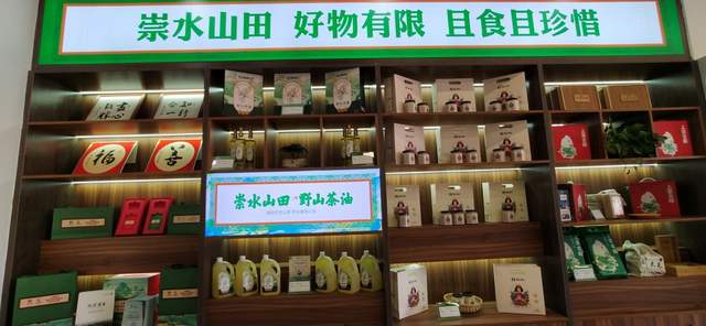 “崇水山田”,山是阳明山、水是阳明湖、田是上堡梯田,代表的就是崇义的山水林田湖,以及这片山水林田湖上生产出来的生态物产。“崇水山田”生态物产以绿色、有机、富硒为导向,对产品质量严格检测把关,去年以来,赤水仙高山茶、龙归绿茶、高山梯田米等6个产品通过富硒产品检测认定,崇义高山茶、上堡大米分别荣获中华品牌商标博览会金奖、第二届江西“生态鄱阳湖 绿色农产品”博览会产品金奖,全省首个南酸枣地方标准《地理标志产品崇义南酸枣》正式发布实施。“崇水山田”实行“双品牌运营”,初步构建了区域品牌与企业品牌相结合的“1+N”母子品牌体系。经过精挑细选、优中选优,目前已经有高山茶、山茶油、梯田米、黄元米果、竹笋粉丝等35个本地名优产品纳入了“崇水山田”区域品牌。