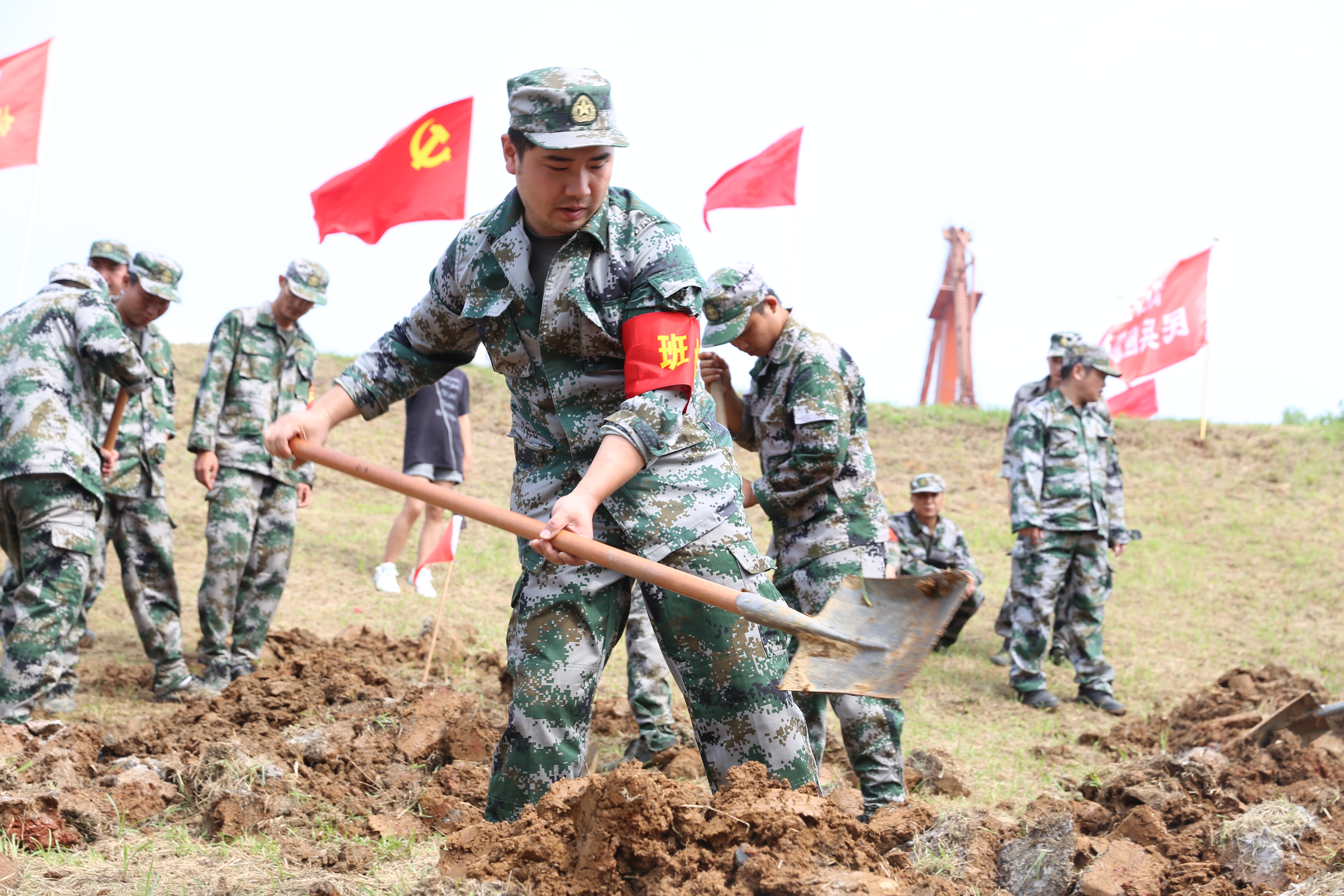章洪平、江华、罗钢,三位曾参加过1998年抗洪的战士,时隔22年后再次携手战斗。挖水沟、扛沙袋、填砂石……大堤上高温湿热,挡不住他们如火的意志。
