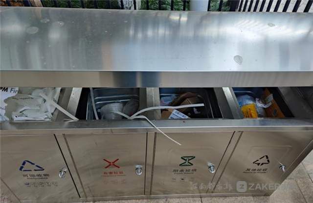 走进该中心一楼,在楼层的门口设有分类垃圾桶,且已投入使用。记者注意到,该中心的 4 个楼层都设有分类垃圾桶,传统的未分类垃圾桶不见身影。
