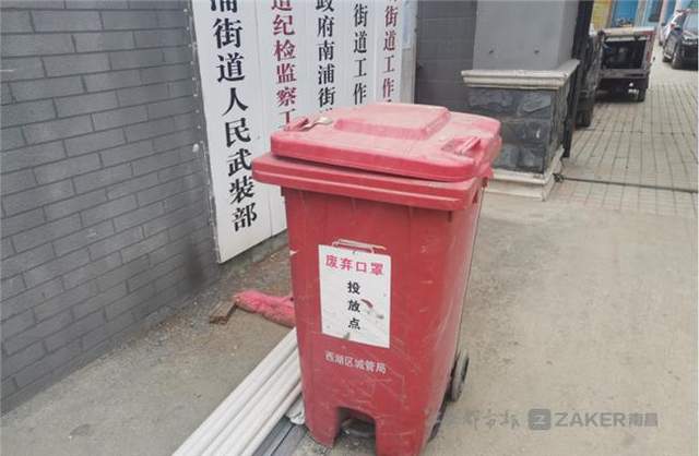 1 月 5 日下午 1 时许,记者来到西湖区南浦街道办事处,只见门前醒目位置设立了一个红色垃圾桶,桶上贴有 " 废弃口罩投放点 " 字样。记者打开桶盖,一股酸臭味扑鼻而来,桶内垃圾凌乱污浊,有厨余垃圾、其他垃圾等。