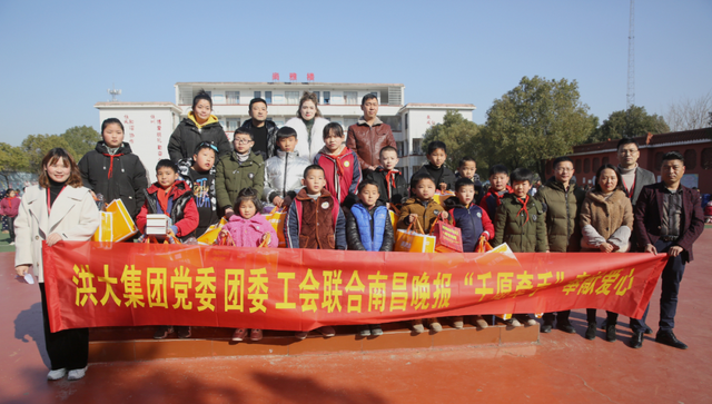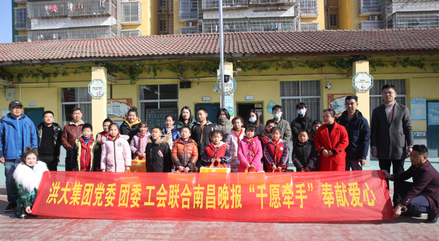 1月14日,洪大集团党委、团委、工会及爱心商户联合南昌晚报开展“千愿牵手”活动,为南昌昌东镇第一小学和东谢小学的孩子们,送上冬日的温暖。