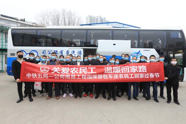“由于要赶工期,一开始我们都担心买不到火车票,后来中铁五局南昌地铁项日部的领导向我们承诺,免费为我们包车回家,所以我们都安心的做完剩下的那道工序。”来自甘肃省徽县田明科高兴的说道。