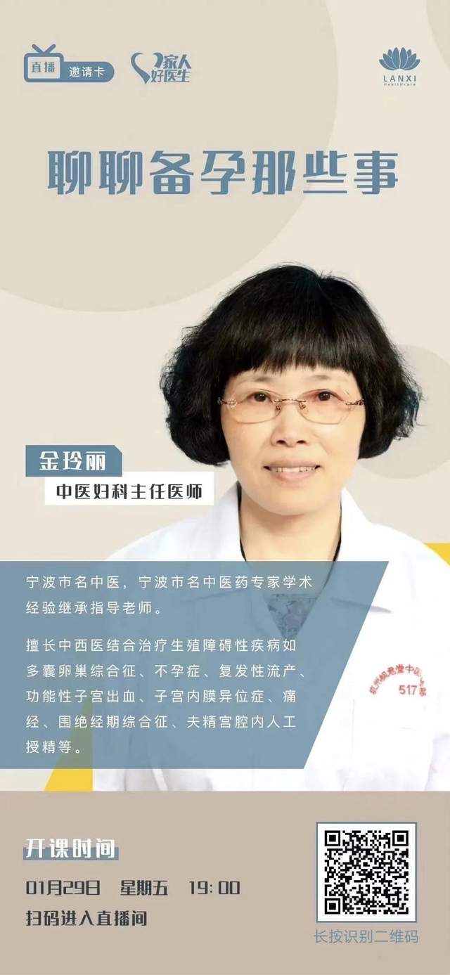 1月29日(本周五)19:00-20:00金玲丽主任医师为我们线上直播讲座《聊聊备孕那些事》