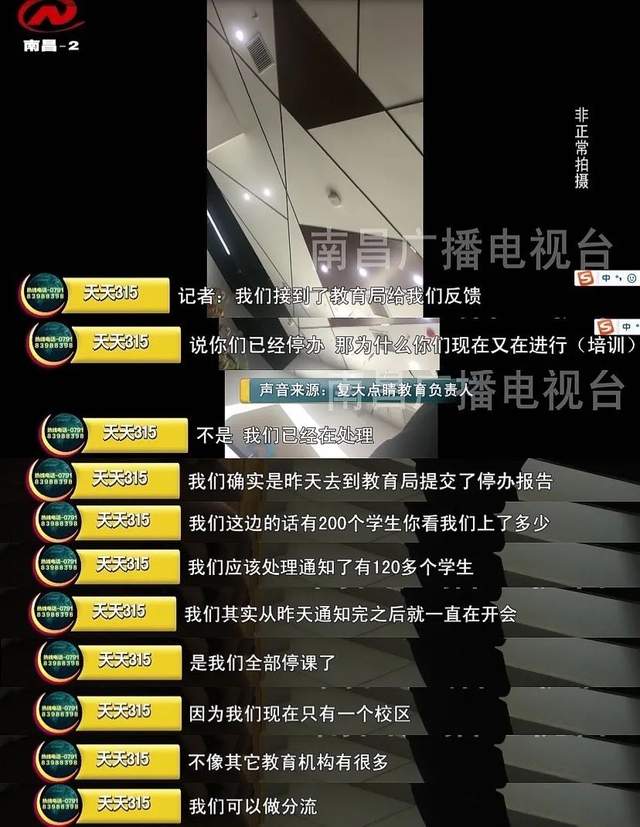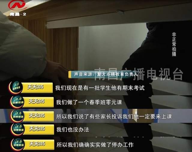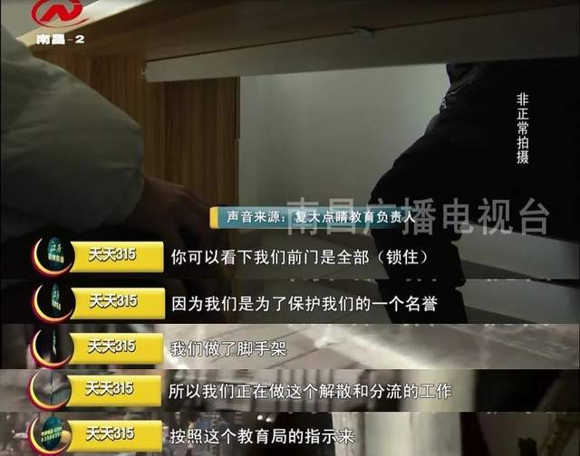 对于大门紧锁,背地里却暗自从后门引导学生来进行培训,复大点睛教育的负责人声称这一切都是为了保护企业名誉。