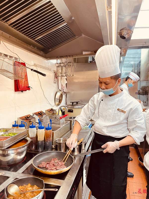 李文勇的父母、妻儿都在广东清远老家,今年是他人生中第一次在异乡过年。“做餐饮行业的,要具备牺牲小家,服务大家的素养。只要顾客吃得开心,我们就开心。”李文勇对记者说,“厨师要对餐馆负责,更要对食客负责。”