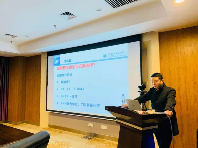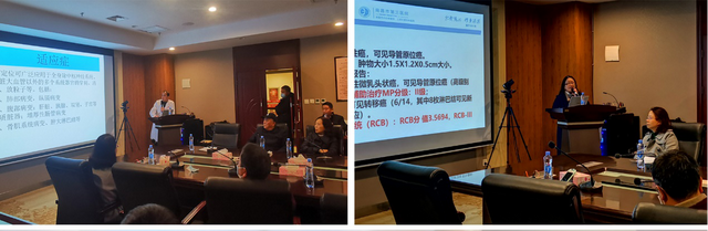 病理科瞿伟主任、CT室黄智亮医师分别就乳腺癌的病理及影像诊断的前沿进展及临床经验进行了交流。乳腺五科陈军副主任医师带来的HR-/Her2+乳腺癌治疗选择思考将会议推向讨论高潮。各科室专家各抒己见,旁征博引,内外科医生展开了激烈的辩论,精彩纷呈。