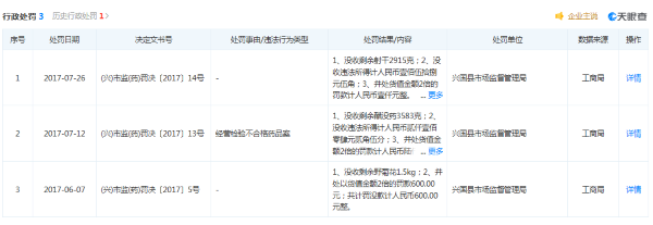 值得注意的是,据天眼查显示,该企业此前曾因经营检验不合格药品等原因被多次处罚。