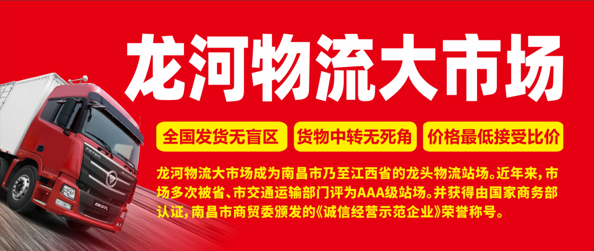 龙河物流大市场是经南昌市人民政府批准,由江西龙河物流有限公司投资兴建的、全省最具规模的物流专业市场之一。市场主要功能是为物流企业的货物中转、仓储、信息等提供平台。市场于二〇〇九年二月竣工开业,至今为止,累计超200多家物流经营户在市场进行过物流经营。物流经营线路覆盖全国主要大中城市,省内地市县基本覆盖,市场运作以来成为南昌老专业市场的主要物流配送点,成为南昌市乃至江西省的龙头物流站场。近年来,市场多次被省、市交通运输部门评为AAA级站场。并获得由国家商务部认证,南昌市商贸委颁发的《诚信经营示范企业》荣誉称号。