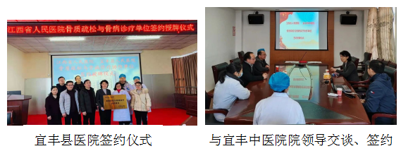 1月29日,江西省人民医院副院长、中华医学会骨质疏松与骨矿盐疾病分会常委、江西省骨质疏松专病联盟牵头人霍亚南来到宜丰县人民医院和宜丰县中医院签署了骨质疏松与骨病诊疗技术合作协议并对骨质疏松症专病联盟工作的建设进行了现场指导。