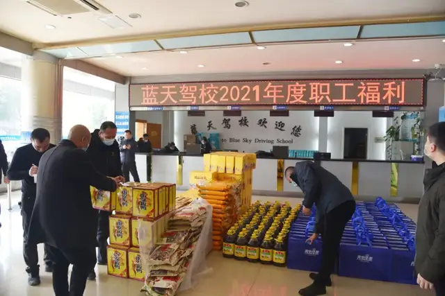 春节临近,为感谢全体员工一年来的辛勤付出,开开心心地欢度传统佳节,蓝天驾校为每位员工发放了丰富的春节年货福利,给全体员工带来了浓浓的年味。