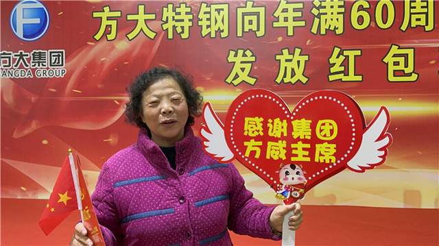 “企业改制后,惊喜一个接着一个。每个月都领到了200元捐赠金,还有孝敬父母金、医疗资助,年终红包也发了好多次。方大集团及方大特钢对我们老同志真是关爱有加呀。谢谢方主席,谢谢各位领导!”