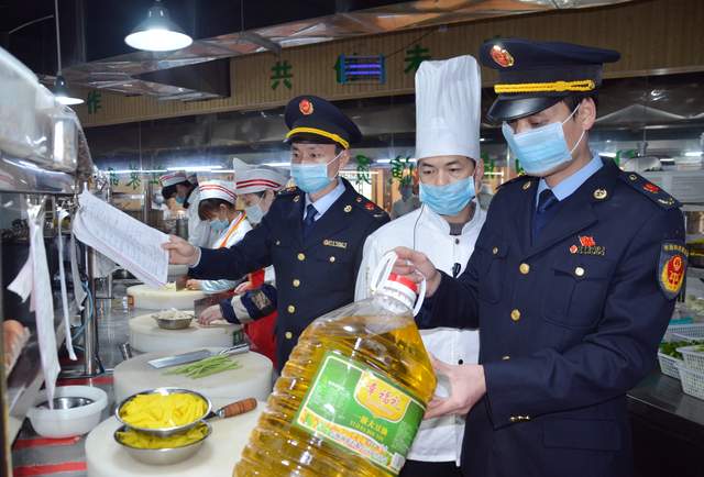 图为2月3日该局执法人员正在县城一供餐单位检查。