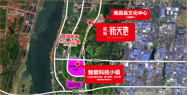 嘉福·新天地落子象湖滨江正芯,北承商业金融中心&千亿产业园,东临南昌县文化中心,南接科创中心、西揽九龙繁盛。紧邻南昌县文化中心(在建中),近揽新洪城大市场繁华璀璨,外享一江三公园自然盛景;周边三甲医院护航,优教环绕。坐拥区域核芯利好。