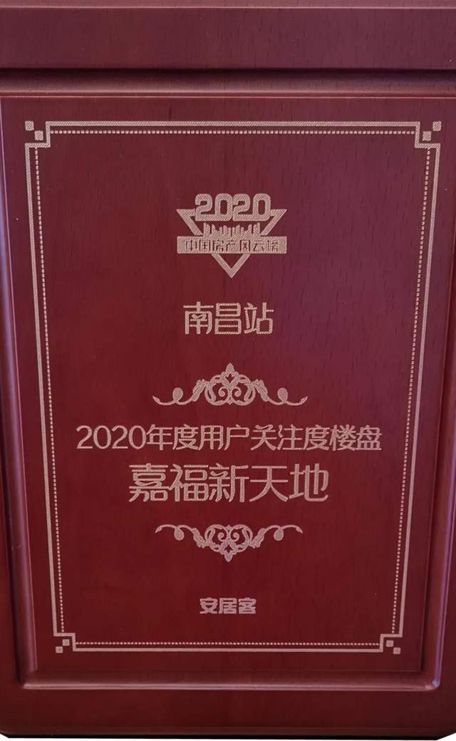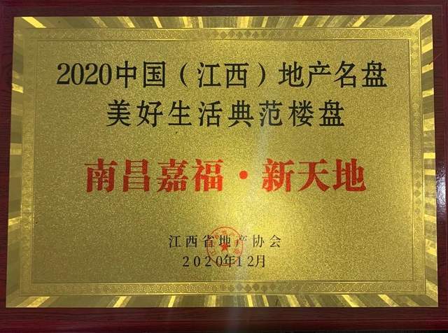 在受到客户热捧的同时,嘉福新天地也受到地产业界的高度评价,接二连三的斩获各项大奖:年度品质标杆楼盘、2020中国(江西)地产名盘美好生活典范楼盘、2020中国地产风云榜南昌站2020年度用户关注度楼盘,可谓是硕果