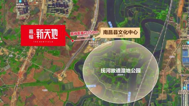 嘉福·新天地,一路之隔南昌县文化中心直线距离仅约350米,咫尺抚河故道湿地公园,约1.8万亩纯翠氧生大境,下楼即可漫步其中,自然秘境,阳台私揽。