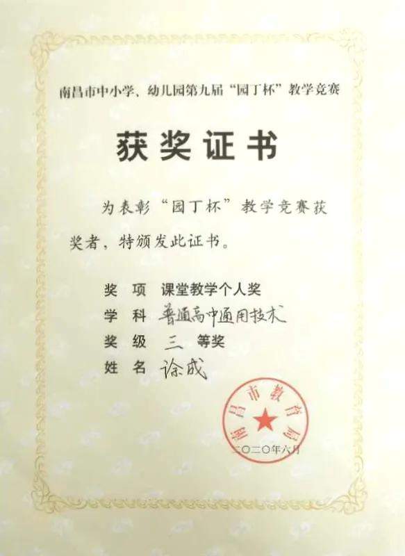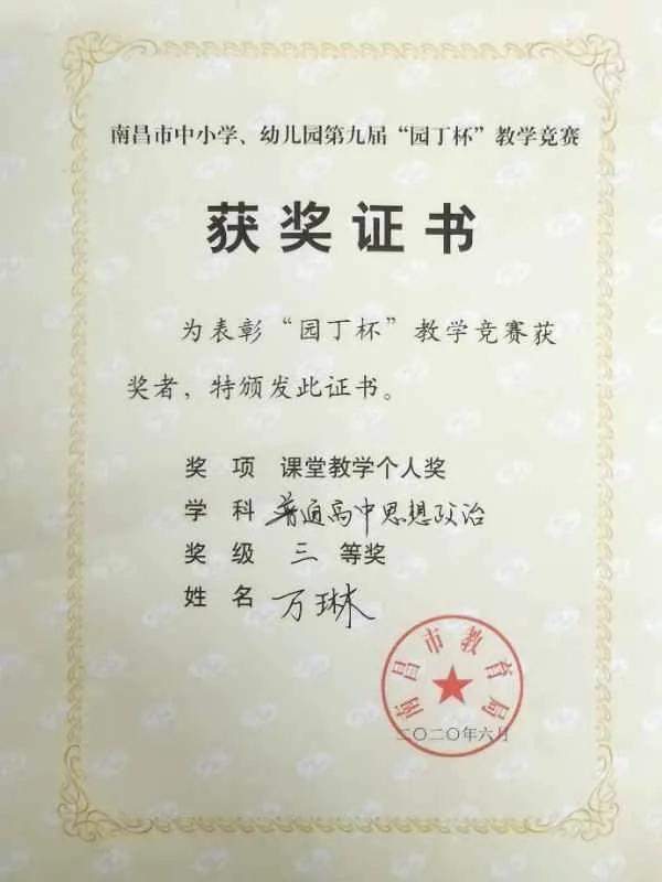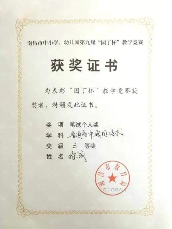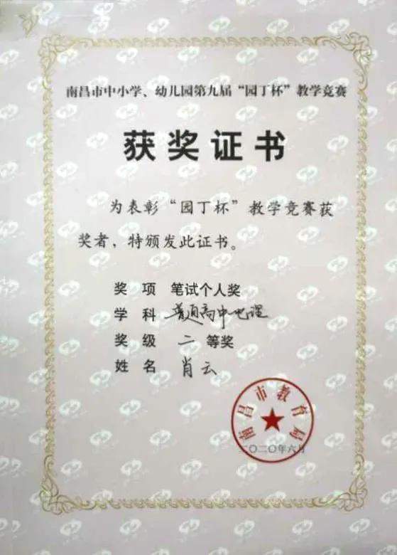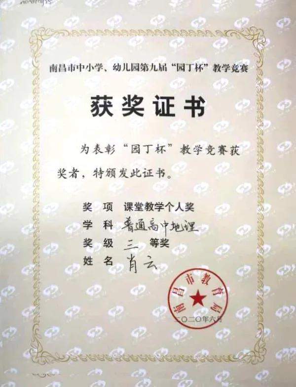 南昌现代外国语学校肖云等五名教师荣获第九届“园丁杯”教学竞赛高中组二、三等奖。