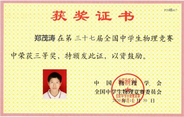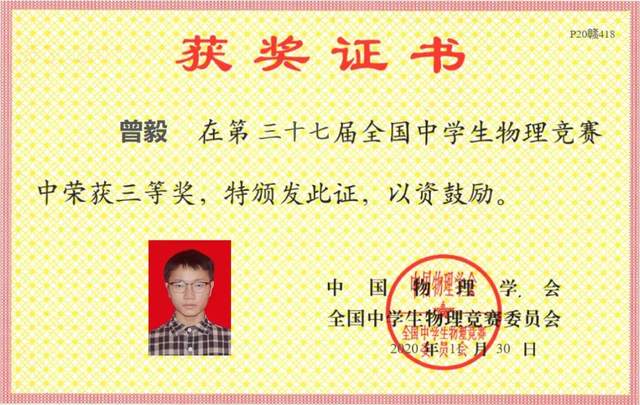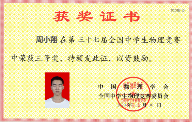 在第三十七届全国中学生物理竞赛中,赣西外国语学校高中部郑茂涛、周小翔、曾毅三位同学荣获三等奖。