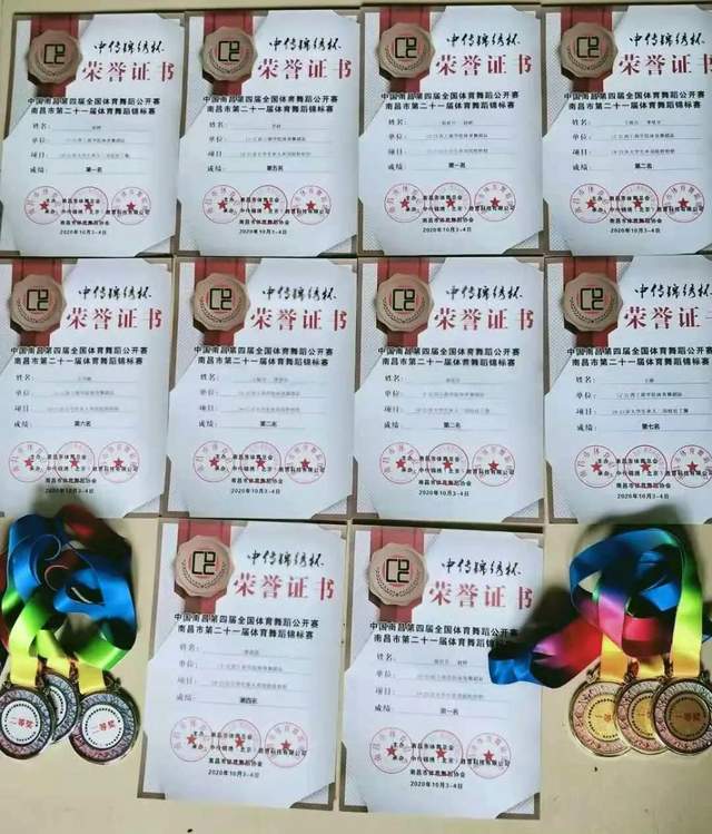 江西工商职业技术学院教育分院多名学生荣获南昌市第二十一届体育舞蹈锦标赛第一名3个,第二名3个,其他名次4名个。