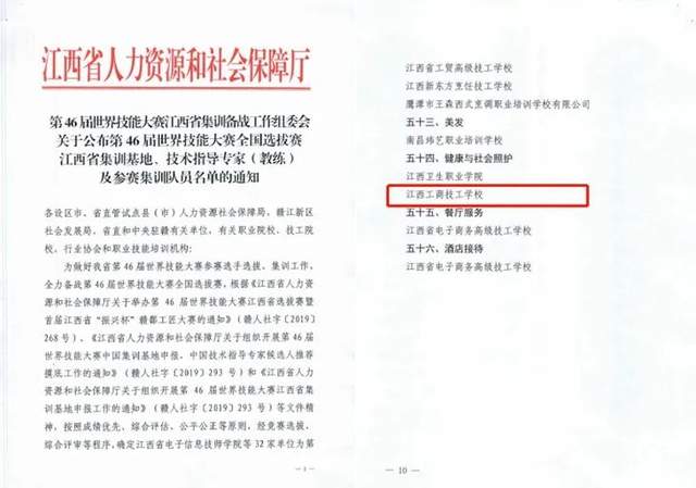 江西工商技工学校被授予为第46届技能大赛江西省集训基地健康与社会照护集训基地。