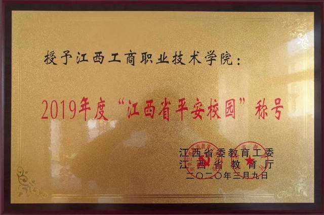 江西工商职业技术学院荣获2019年度“平安校园”荣誉称号。