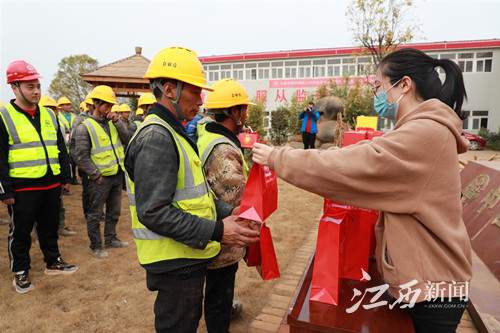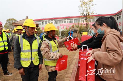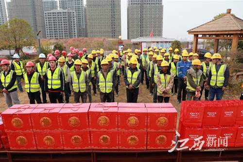 2月4日下午,江西新闻客户端联合南昌青山湖、饿了么的工作人员,前往南昌地铁4号线望城车辆段中铁一局项目部,为这个春节还将在一线繁忙工作的留赣建筑工人送出来自饿了么平台商家美宜佳、养乐多、益丰大药房准备的300份温暖大礼包。