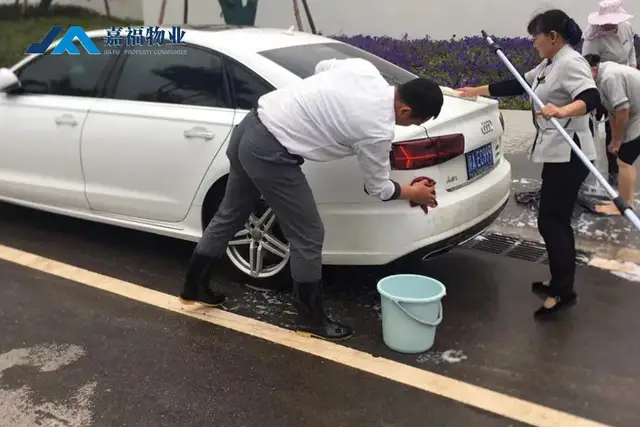 嘉福物业始终以高起点、高品质作为企业服务目标,践行“用心服务,感动业主”的服务理念,以微笑、以专业迎接每一位客户,在您看得见或看不见的地方提供着贴心细致的服务:微笑接待、换轮胎服务、爱心洗车服务。
