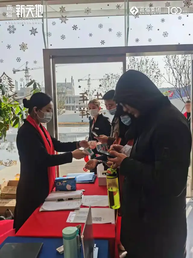 在新春团圆时刻,嘉福服务始终从客户健康出发,深化案场服务,制定严格防疫流程,面对案场火热人气,进行有条不紊的引导,多方位防护,为每一位客户安全保驾护航!