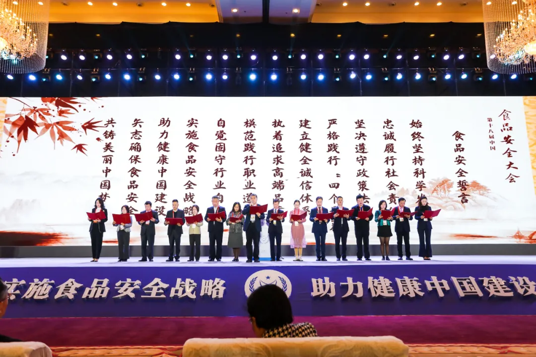 行业领军企业的代表们用六句话、九十五个字,发出了铿锵有力的誓言,传达了捍卫食品安全的决心和信心:始终坚持科学发展,忠诚履行社会责任;坚决遵守政策法规,严格践行“四个最严”;建立健全诚信体系,执着追求高端品质;模范践行职业道德,自觉固守行业自律;实施食品安全战略,推进健康中国建设;矢志确保食品安全,共铸美丽中国梦。