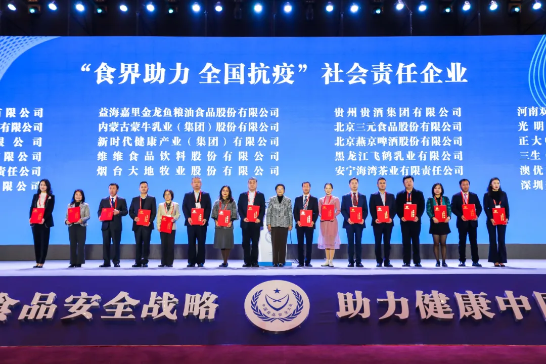 开幕式上,三生(中国)健康产业有限公司与首农食品集团、益海嘉里粮油、双汇发展、光明乳业、康师傅控股、新时代健康产业、燕京啤酒、顺鑫控股、维维食品、伊利实业、蒙牛乳业等22家企业荣获了“食界助力 全国抗疫”社会责任企业称号。