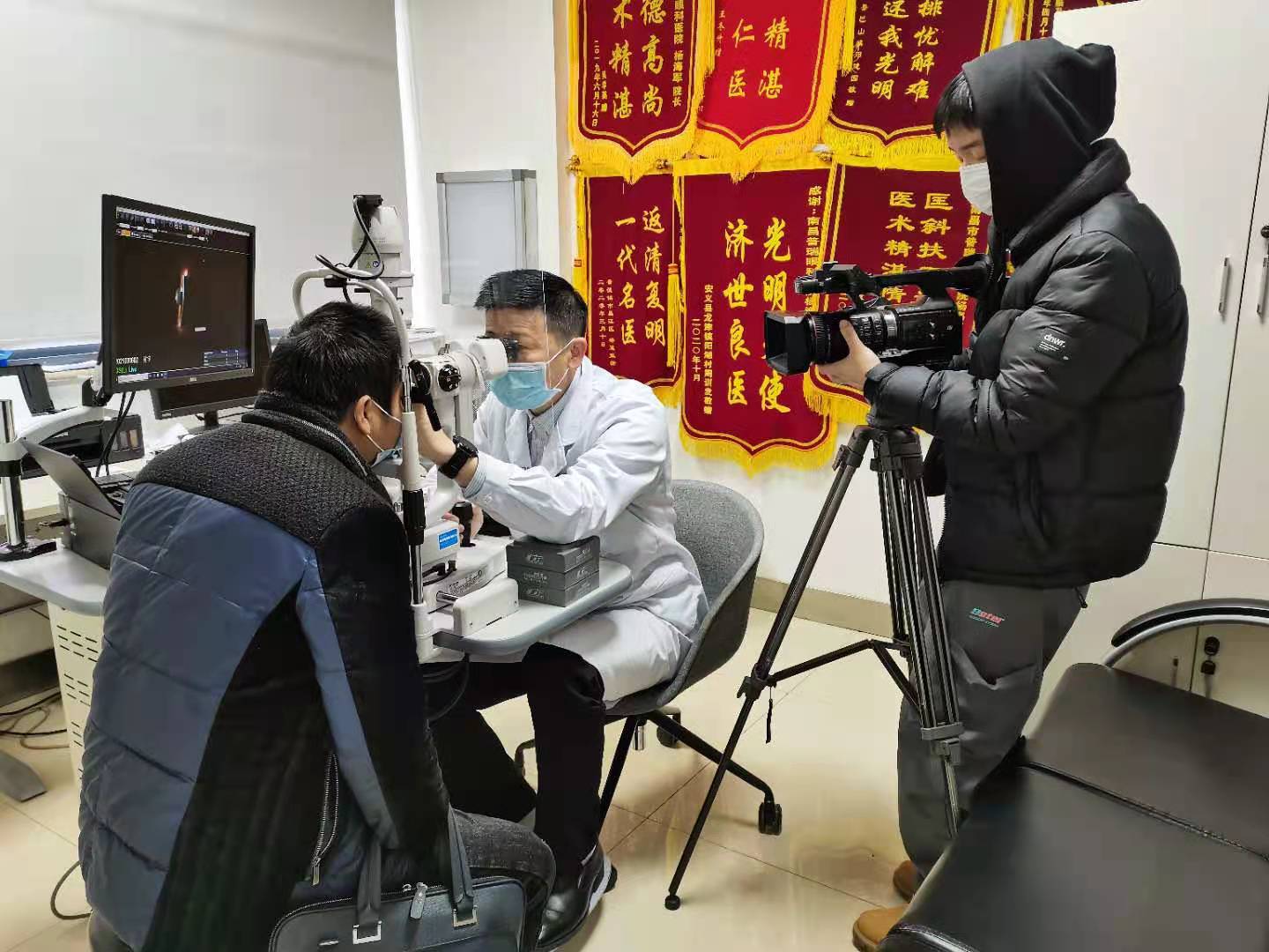 在随后的公益义诊活动中,杨海军院长、周新洪主任、龙楷林医师、胡圆医师等四位青光眼专家为患者们进行了免费的青光眼专业检查。本次世界青光眼周大型公益活动也是受到了南昌电视台等多家媒体的关注,相继联合本院开展各种形式的宣传报道。