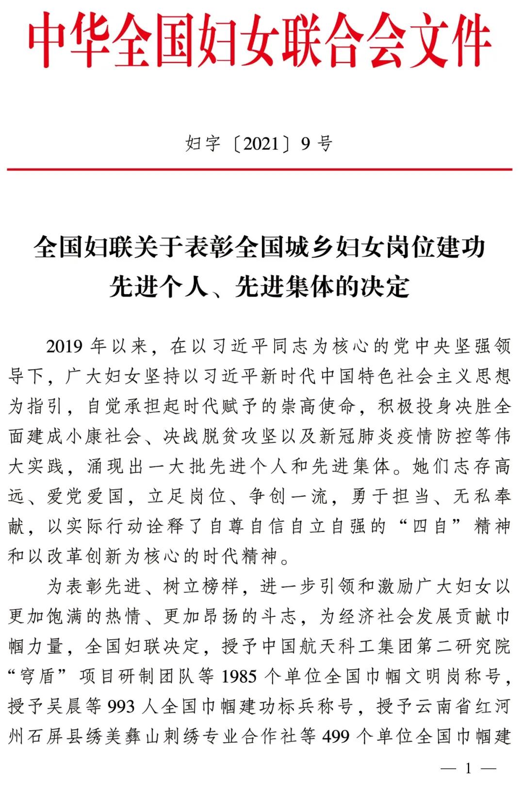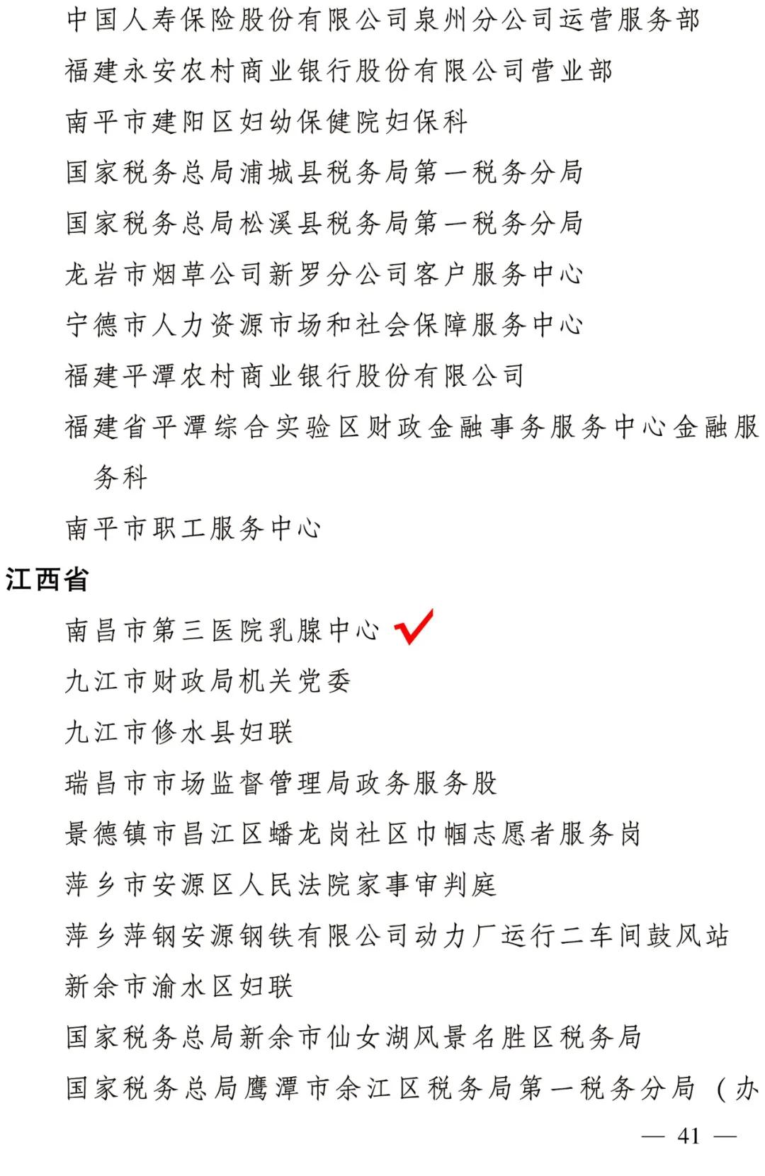近日,全国妇联公布2021年全国巾帼文明岗、全国巾帼建功标兵、全国巾帼建功先进集体名单,南昌市第三医院乳腺中心获“全国巾帼文明岗”称号,系南昌市卫生健康系统唯一获此殊荣的单位。