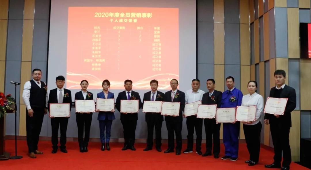 在表彰大会前,主持人首先宣布了集团关于《2020年度优秀员工、优秀团队等奖项的表彰决定》。分别表彰了7个公司的相关个人和团队,包括优秀新人、优秀员工、优秀经理、优秀团队、优秀管理者、贡献奖和全员营销荣誉奖,共有48个集体或个人入选名单。随后集团领导分别向获奖个人和团队颁发了奖牌、奖品、证书等,并与获奖者合影留念。