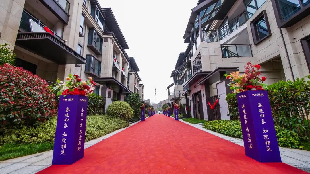 交付初始,硕丰·西湖里所有岗位都早早地到达交付现场,做好充足的上岗前准备工作,交房路线铺上庆贺乔迁的地毯,沿路红灯高挂等,国院礼仪在现代生活与东方情怀交相辉映的中式画卷中徐徐展开。